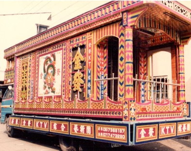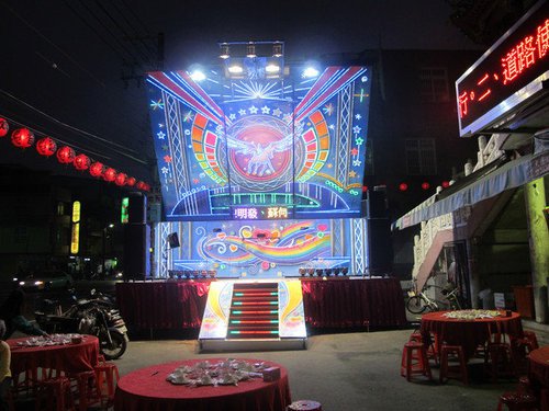 電子花車,這項文化相傳是從泉廈所引進台灣的「藝閣」所演變而來。發展至今,原本以人力扛抬遊街以表演各種南管樂曲的藝閣,慢慢轉變成用牛車、木輪車、電動車以至於大貨車承載,其上表演舞台的裝飾也越來越花俏,並且隨著科技的進步,各種聲光特效乃至於油壓式開展舞台也應運而生。表演內容也歷經質變,從早期的樂曲演奏慢慢轉變為以女性藝人為表演舞台的場地,其後更有脫衣舞、鋼管女郎等等花樣的出現,演唱歌曲的主流也從台語流行歌曲慢慢往電子舞曲靠攏。