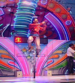 吸引觀眾的另一種表演手法。雖因工具及空間的侷限(需鋼管設備),只能於喜