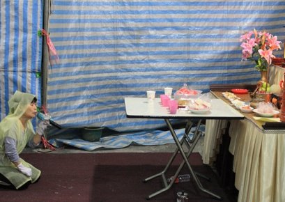答:其實到現在來說的話都習以為常了,所以不太覺得什麼很奇怪,還記得我一開始去唱喪禮的時候,看
