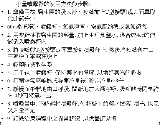 蒸氣吸入 (小量嘖霧器的使用方法)