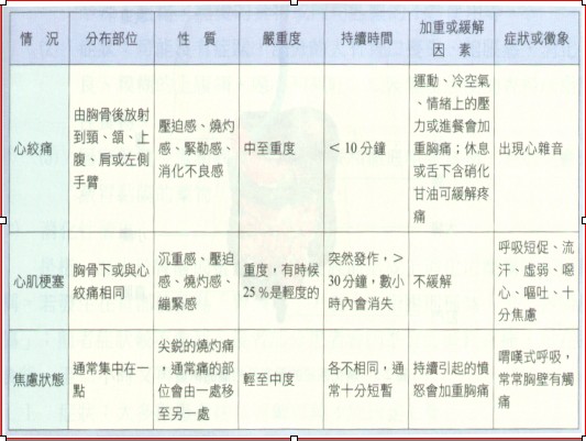 心絞痛、心肌梗塞和焦慮狀態的比較