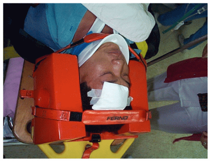 昏迷不醒的外傷病患,易伴有脊髓損傷,在未證實其脊椎是正常以前,一概需假設病人有脊椎外傷來搬運處理。 |