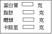依照所選的食物圖片,顯示如左列表格。此表格依據下列表(一)。 |